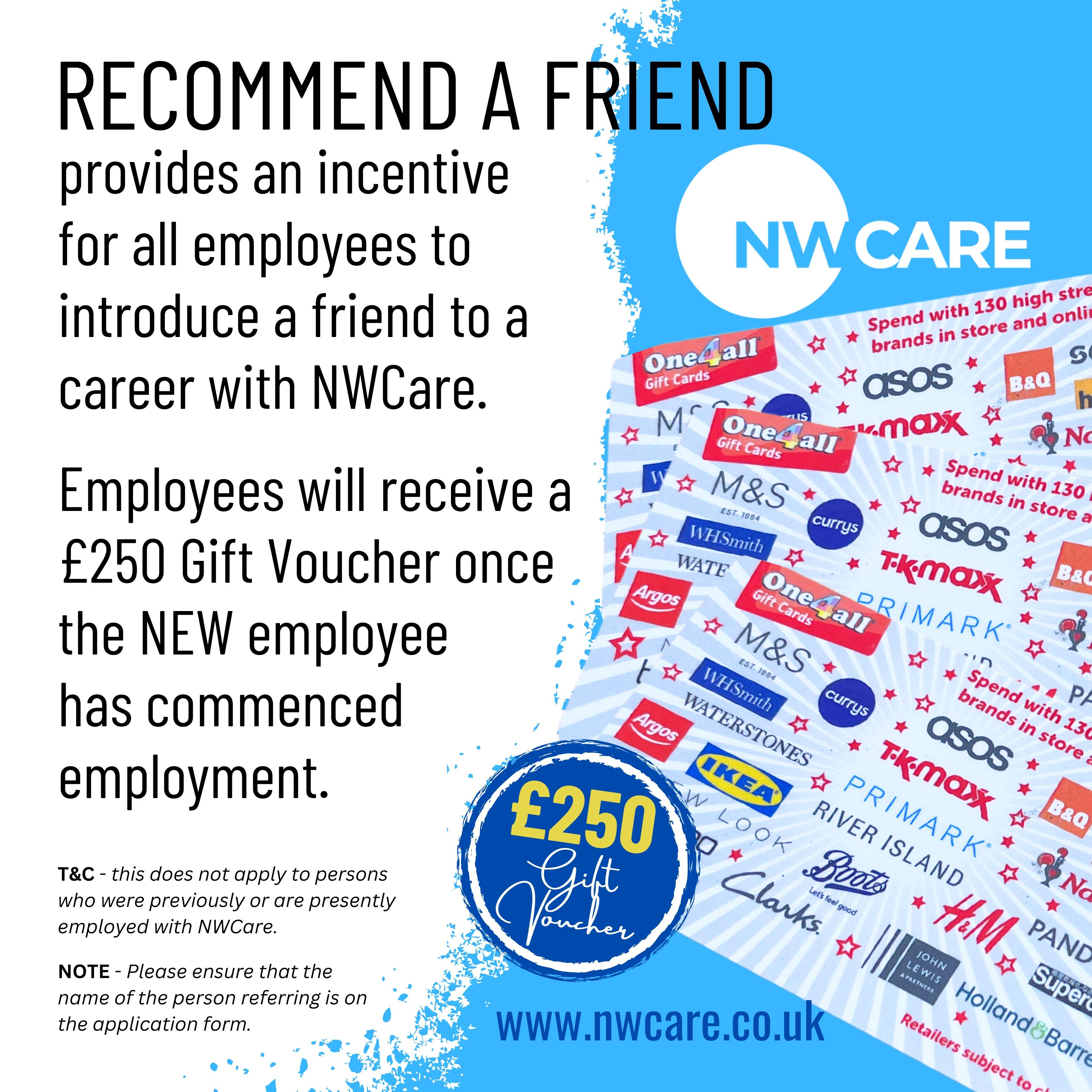 Employees will receive a £250 Gift Voucher once the NEW employee